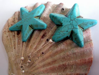 Gwiazdy z naturalnego Turkusa /4 cm średnicy/, elementy posrebrzane. Długość ok. 6 cm.