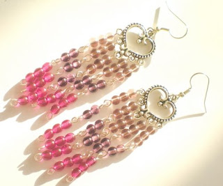 Kolczyki wykonane ze szkła Jabłonex i elementów posrebrzanych. Długość ok. 8 cm.