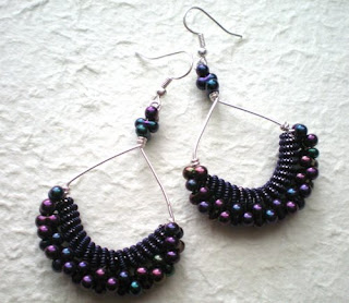 Kolczyki wykonane z korali szklanych "farfale", drucika fioletowego i elementów posrebrzanych.
