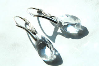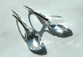 Kolczyki wykonane z kryształów Swarovski Migdał w kolorze Crystal oraz bigli srebrnych.