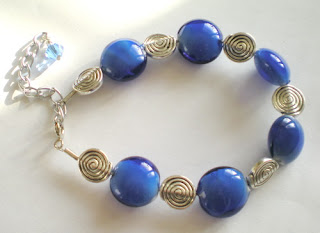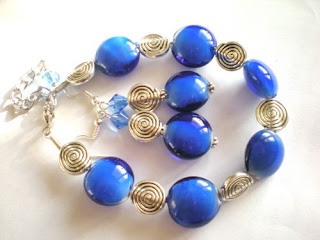 Komplet wykonany ze szkła weneckiego, elementów posrebrzanych i kryształków preciosa.