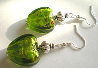 Kolczyki wykonane ze szkła weneckiego i elementów posrebrzanych.