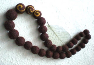 Korale wykonane z filcu, linki jubilerskiej i elementów posrebrzanych.