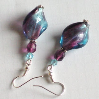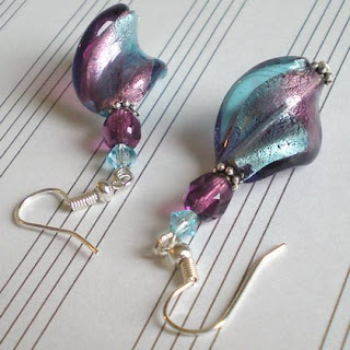 Kolczyki wykonane z pięknych korali ze szkła weneckiego z limitowanej serii, kryształków Jabłonex oraz kryształków bicone.
