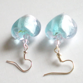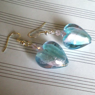Kolczyki wykonane z pięknych korali ze szkła weneckiego z limitowanej serii w kształcie serc oraz kryształków Swarovski bicone.