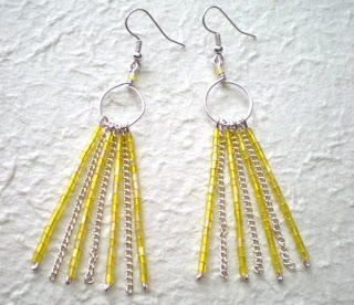 Kolczyki wykonane z drobnych koralików Jabłonex i elementów posrebrzanych.