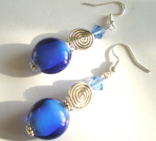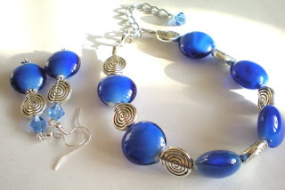 Komplet wykonany ze szkła weneckiego, elementów posrebrzanych i kryształków preciosa.