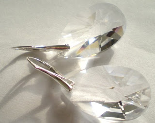 Kolczyki wykonane z dużych /2 cm/ kryształów egipskich i bigli srebrnych /pr. 925/.