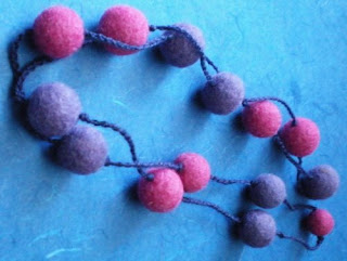 Komplet: długie korale wykonane z ręcznie robionych filcowych kul i kordonka oraz kolczyki /ok. 2,5 cm długości/