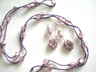 Kolczyki wykonane z korali ze szkła weneckiego, drobnych koralików szklanych i elementów Bali. Długie korale wykonane z kordonka i szkła weneckiego.