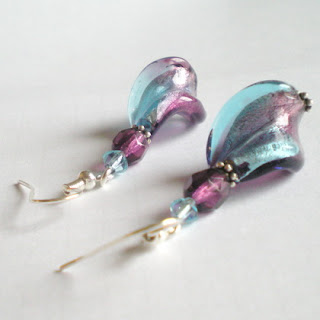 Kolczyki wykonane z pięknych korali ze szkła weneckiego z limitowanej serii, kryształków Jabłonex oraz kryształków bicone.